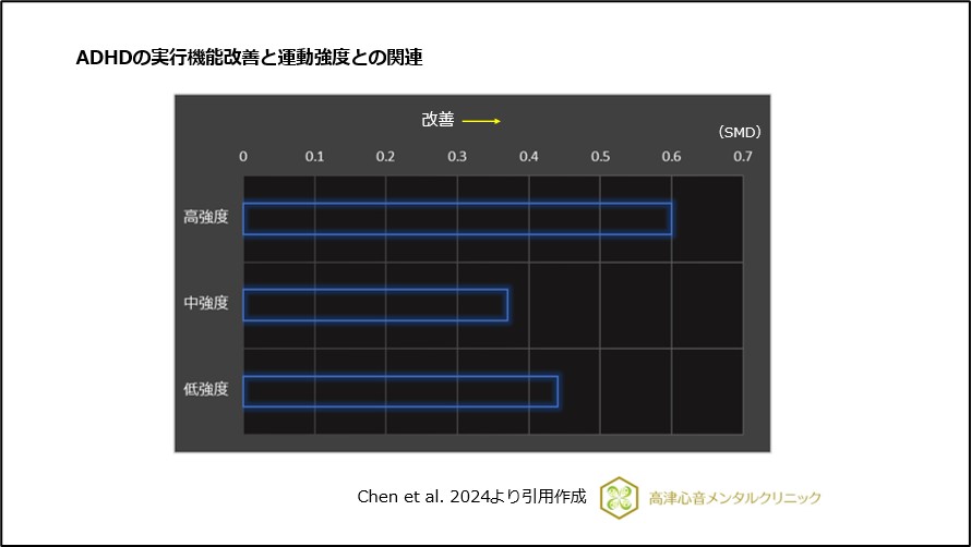 2) Chen JW, et al.: Optimal exercise intensity for improving executive function in patients with attention deficit hyperactivity disorder: systematic review and network meta-analysis. Eur Child Adolesc Psychiatry, 2024.