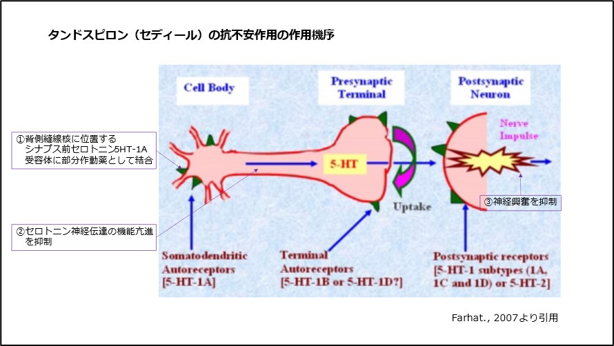 2) Eison AS, Temple DL Jr. : Buspirone: review of its pharmacology and current perspectives on its mechanism of action. Am J Med, 80 : 1-9, 1986.