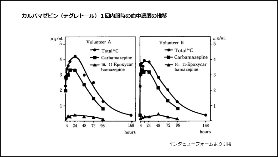 図4 カルバマゼピン(テグレトール)1回内服時の血中濃度の推移