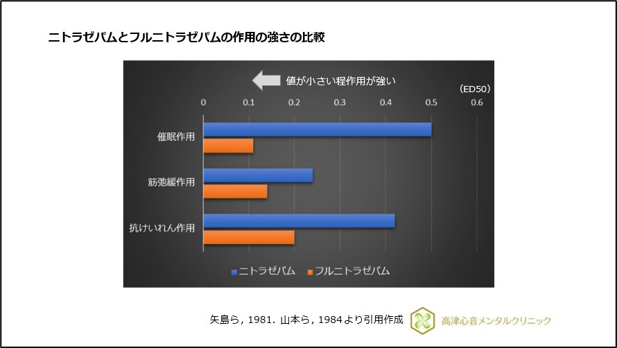 ニトラゼパムより約5倍強い催眠作用を有し、筋弛緩作用、抗けいれん作用も有しています1)、(図2)。