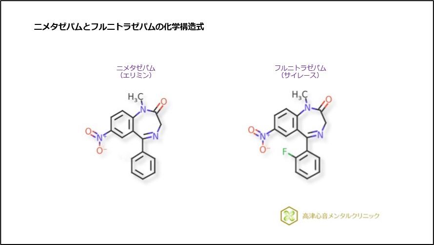 フルニトラゼパムは、ニトラゼパム(先発医薬品名:ベンザリン・ネルボン)をもとに開発されました(図1)。