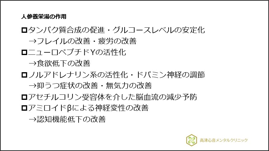 人参養栄湯は多様な機序を介し、種々の効果をもたらすこと示されています(図1)。