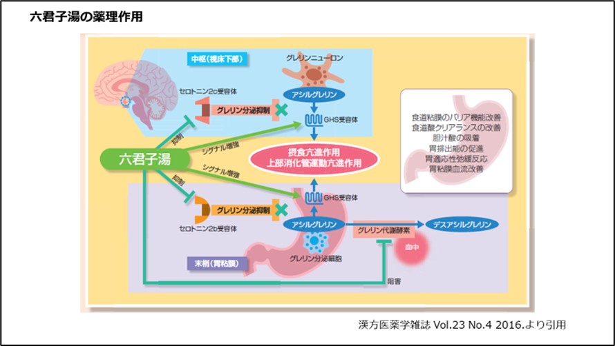 六君子湯はグレリンのシグナル伝達を促進し、食欲不振を改善します(図2)。