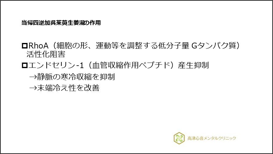 当帰四逆加呉茱萸生姜湯は末梢の血流を改善し、末端冷え性を改善することが示唆されています9)。