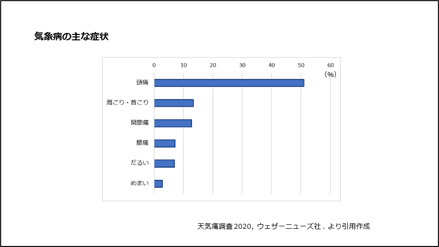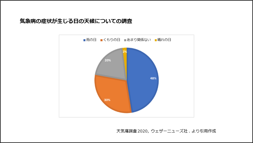 • 1)天気痛調査2020, ウェザーニューズ社.