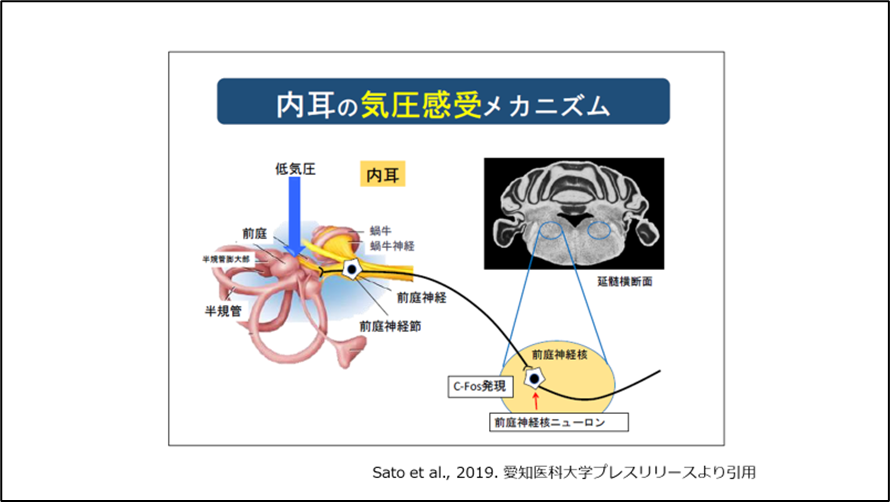 • 4)Sato J, et al. : Lowering barometric pressure induces neuronal activation in the superior vestibular nucleus in mice. PLoS One, 14 : e0211297, 2019.
