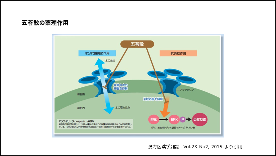 • 7)礒濱 洋一郎. : アクアポリンを介した五苓散の2つのメカニズム. 漢方医薬学雑誌, 23 : 2, 2015.