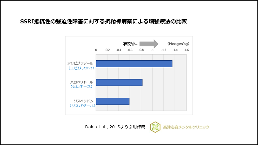 6) Dold M, et al. : Antipsychotic Augmentation of Serotonin Reuptake Inhibitors in Treatment-Resistant Obsessive-Compulsive Disorder: An Update Meta-Analysis of Double-Blind, Randomized, Placebo-Controlled Trials. Int J Neuropsychopharmacol, 18 : pyv047, 2015.