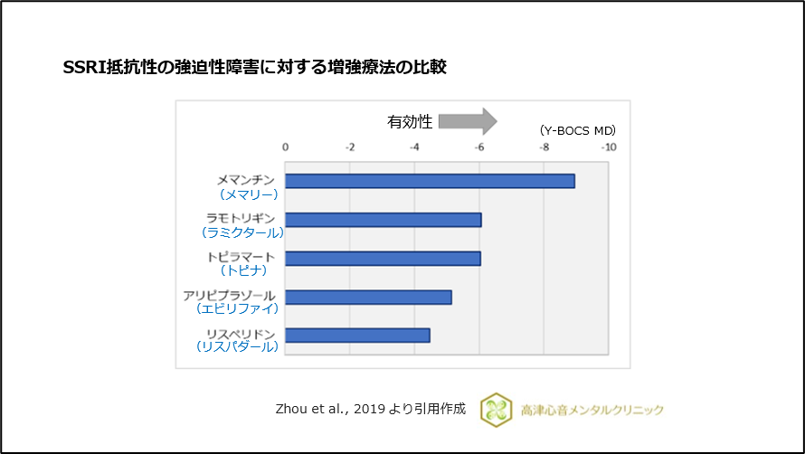 8) Zhou DD, et al. : Augmentation agents to serotonin reuptake inhibitors for treatment-resistant obsessive-compulsive disorder: A network meta-analysis. Prog Neuropsychopharmacol Biol Psychiatry, 90 : 277-287, 2019.