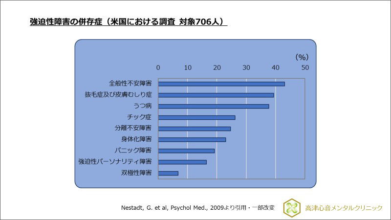 - 10)Nestadt, G. et al. : Obsessive-compulsive disorder: subclassification based on co-morbidity. Psychol Med, 39 : 1491-501, 2009.
