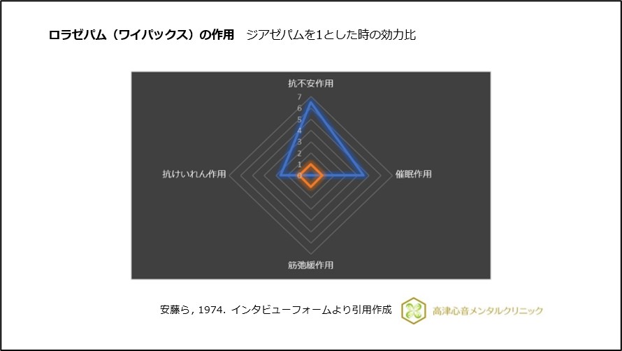 ロラゼパム(ワイパックス)は他のベンゾジアゼピン系抗不安薬と同様に、催眠作用も有しますが、筋弛緩作用もほとんどありません1)、2)、(図2)。