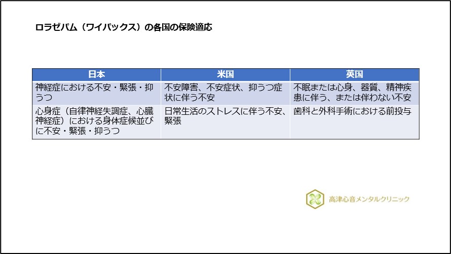 ロラゼパムは不安以外にも抗精神病薬の副作用のアカシジアの治療にも使用されます3)。