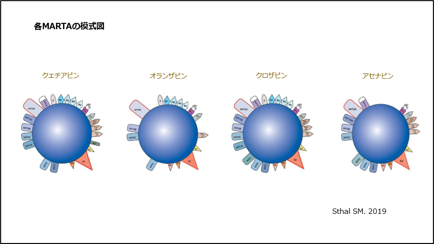 これら複数の受容体に作用する抗精神病薬を、多元受容体標的化抗精神病薬(Multi-Acting Receptor-Targeted Antipsychotic: MARTA)と呼んでいます(図2)。