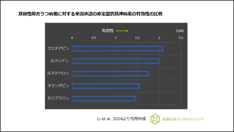 図5 双極性障害うつ病相に対する米国承認の非定型抗精神病薬の有効性の比較