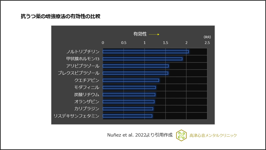 図6 抗うつ薬の増強療法の有効性の比較