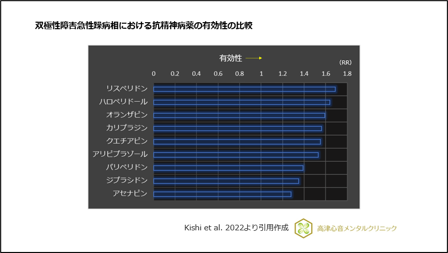 図15 双極性障害急性躁病相における抗精神病薬の有効性の比較