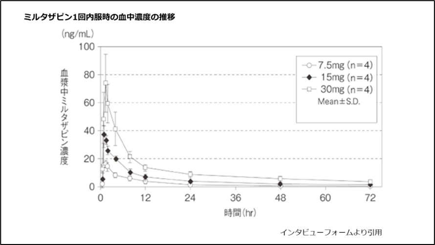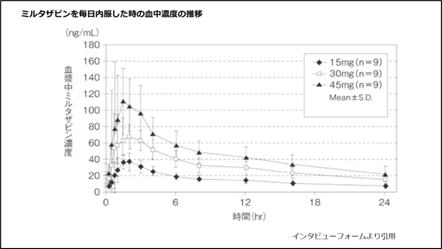 図3 ミルタザピン1回内服時の血中濃度の推移