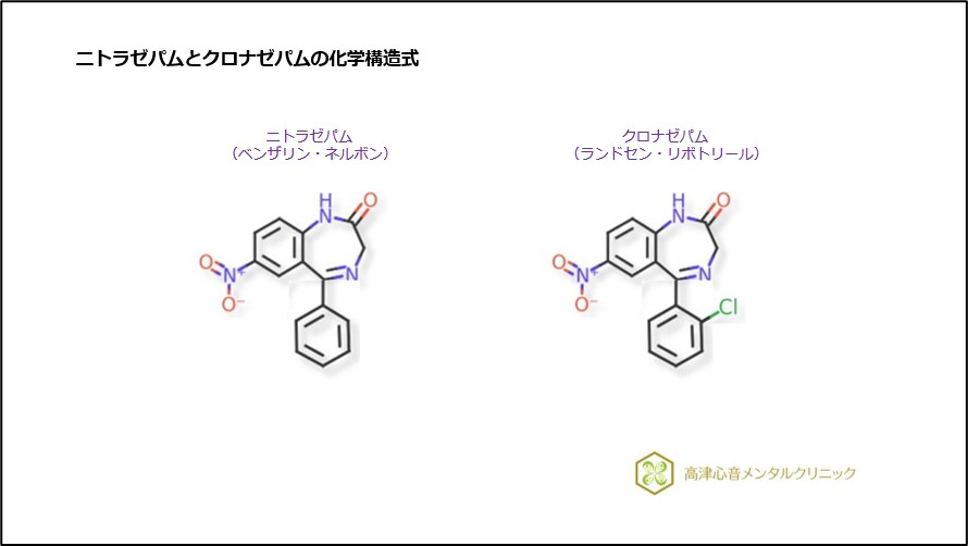 図1 ニトラゼパムとクロナゼパムの化学構造式