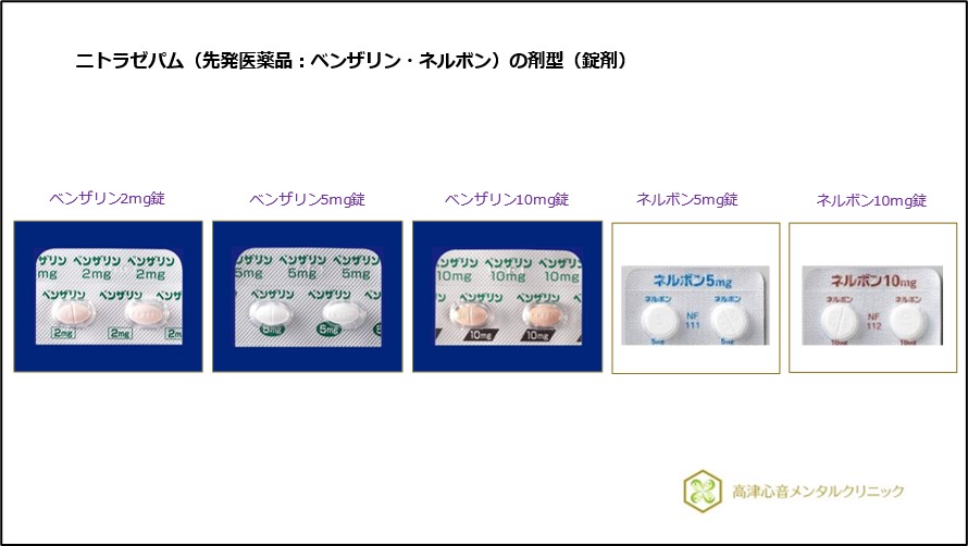 • ニトラゼパム(先発医薬品:ベンザリン・ネルボン)