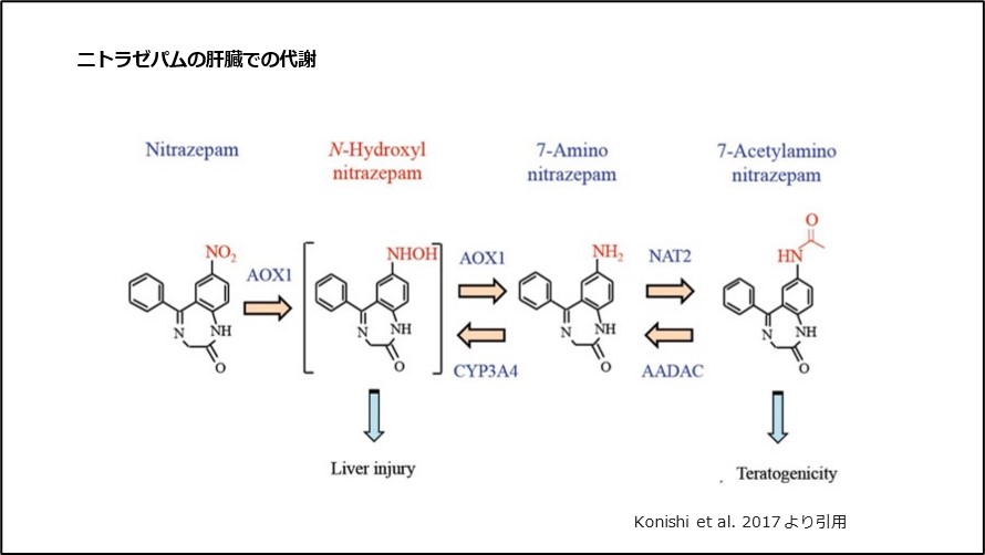 • 5) Konishi K, et al. Identification of enzymes responsible for nitrazepam metabolism and toxicity in human. Biochem Pharmacol, 140 : 150-160, 2017.