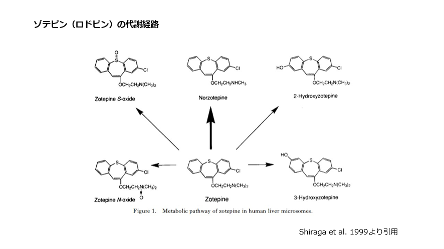 3) Shiraga T, et al.: Identification of cytochrome P450 enzymes involved in the metabolism of zotepine, an antipsychotic drug, in human liver microsomes. Xenobiotica, 29: 217-29, 1999.