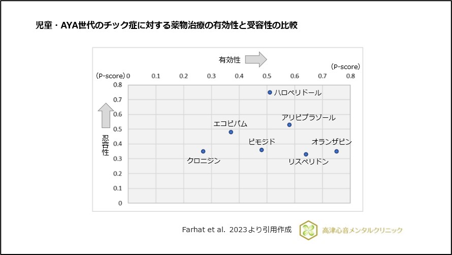 2023年2月Farhatらは児童・AYA世代におけるチック症に対する薬剤の有効性と忍容性・受容性を比較し、解析しました。