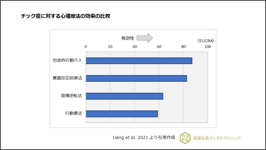 Liangらは2021年に心理療法における有効性の解析を行い、以下の治療が有効であると報告しています3)。