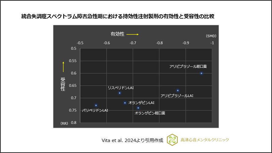 2024年8月、Vitaらにより、統合失調症スペクトラム障害の急性期患者における持効性注射製剤の有効性と受容性の最新の比較が報告されました1)。