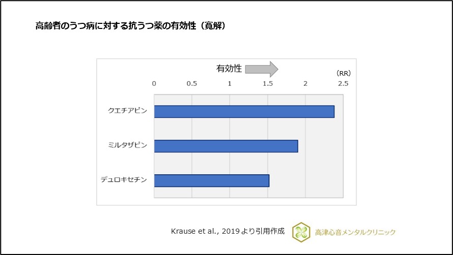 5)Krause M, et al. : Efficacy and tolerability of pharmacological and non-pharmacological interventions in older patients with major depressive disorder: A systematic review, pairwise and network meta-analysis. Eur Neuropsychopharmacol, 29 : 1003-1022, 2019.