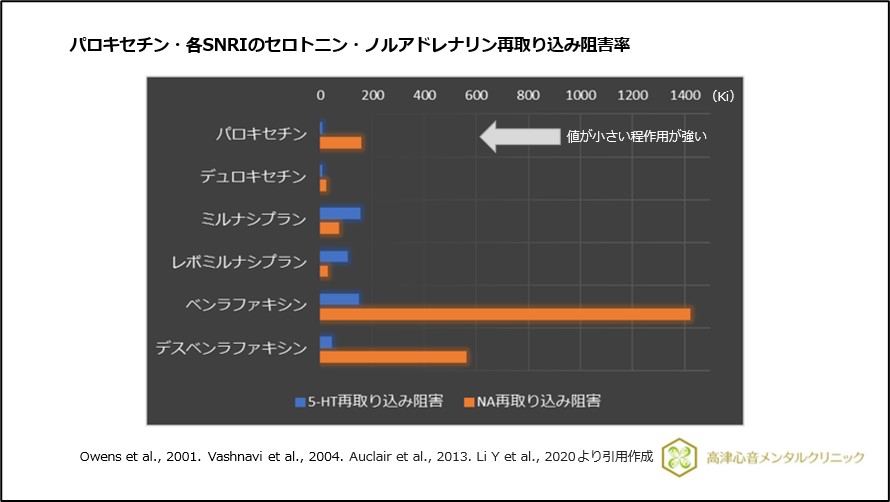 図13 パロキセチン・各SNRIのセロトニン・ノルアドレナリン再取り込み阻害率