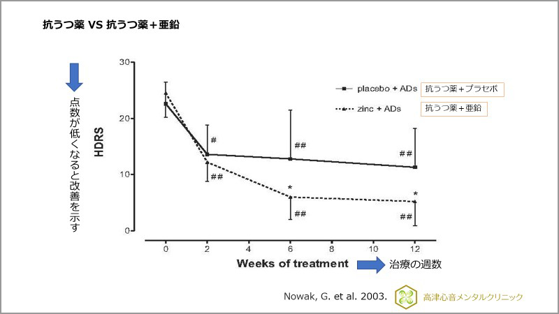 4)Nowak, G. et al : Effect of zinc supplementation on antidepressant therapy in unipolar depression: a preliminary placebo-controlled study. Pol J Pharmacol, 55 : 1143-7, 2003.