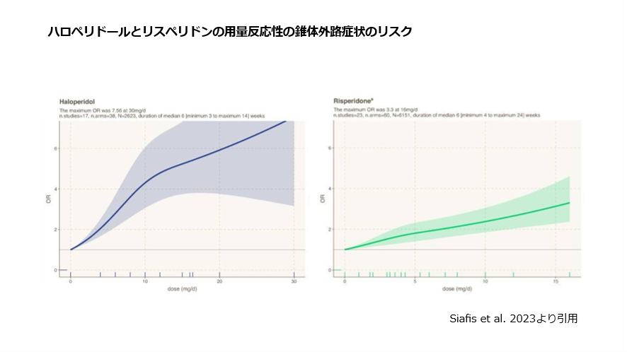 図9 ハロペリドールとリスペリドンの用量反応性の錐体外路症状のリスク
