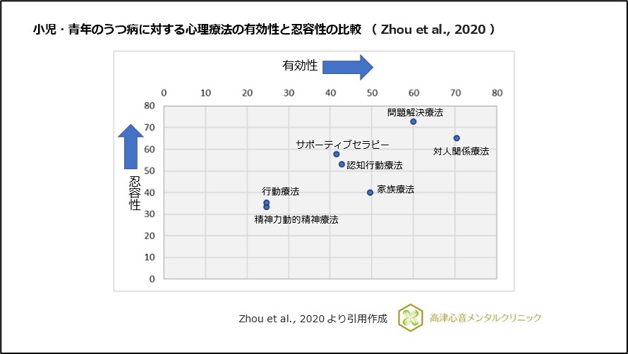 図4 小児・青年のうつ病に対する心理療法の有効性と忍容性の比較